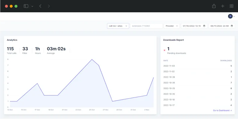 Acceso a informes en tiempo real con métricas muy útiles para call-nic a la hora de tomar decisiones de negocio.