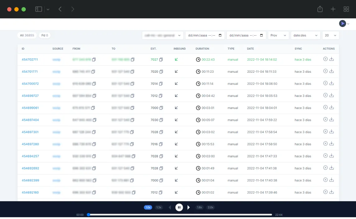 Para agilizar la labor del equipo de call-nic que se dedica a las escuchas, incorporamos al reproductor un selector de velocidades para acelerar las reproducciones y validar en un tiempo menor.